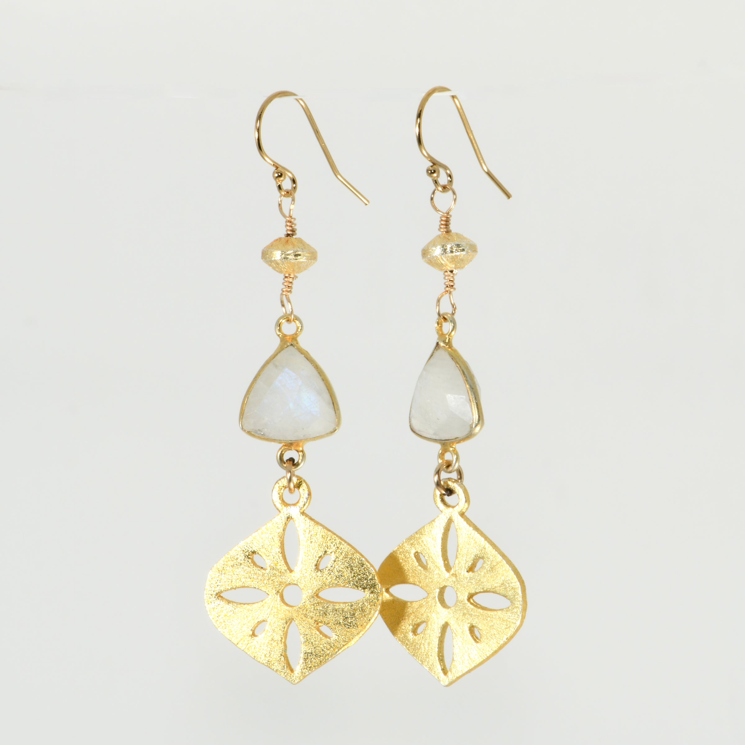 Mandala Trillion Moonstone Gold Fill Dangle Earrings