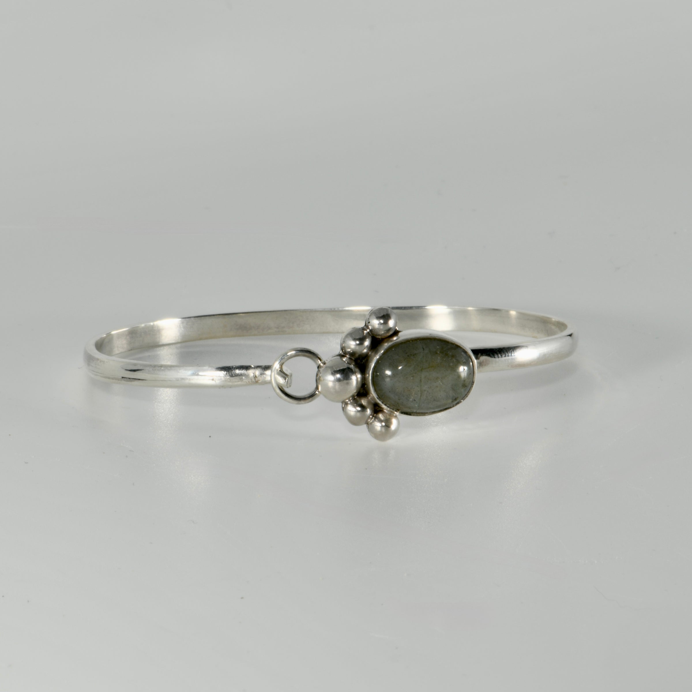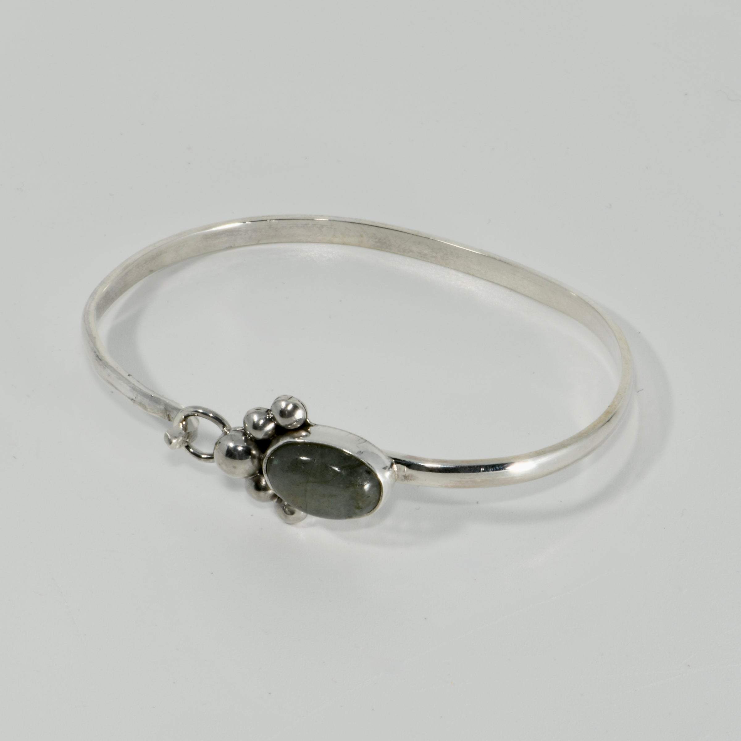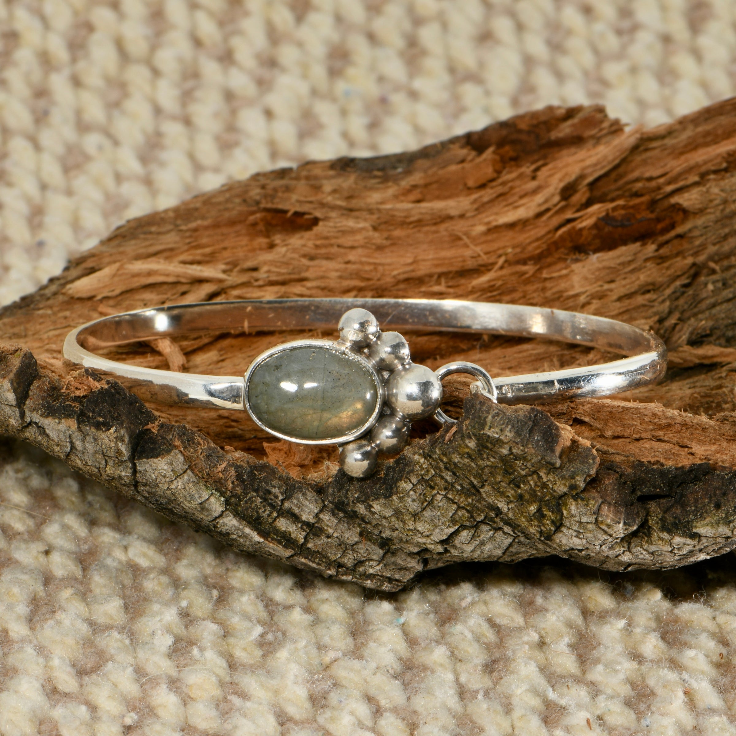 Sterling Silver Natural Labradorite Bangle with Hook Clasp