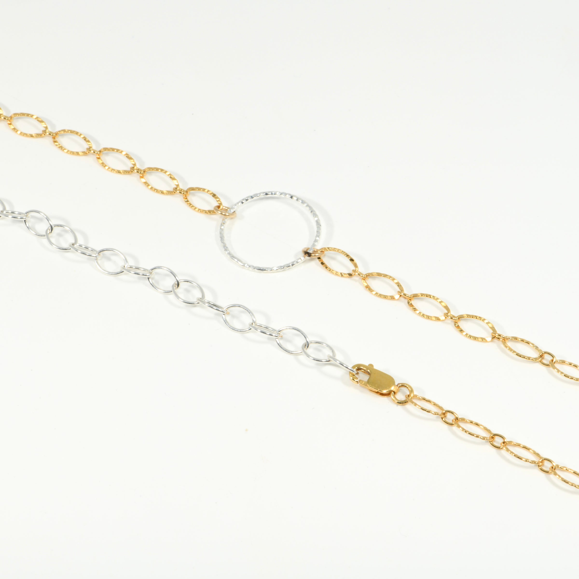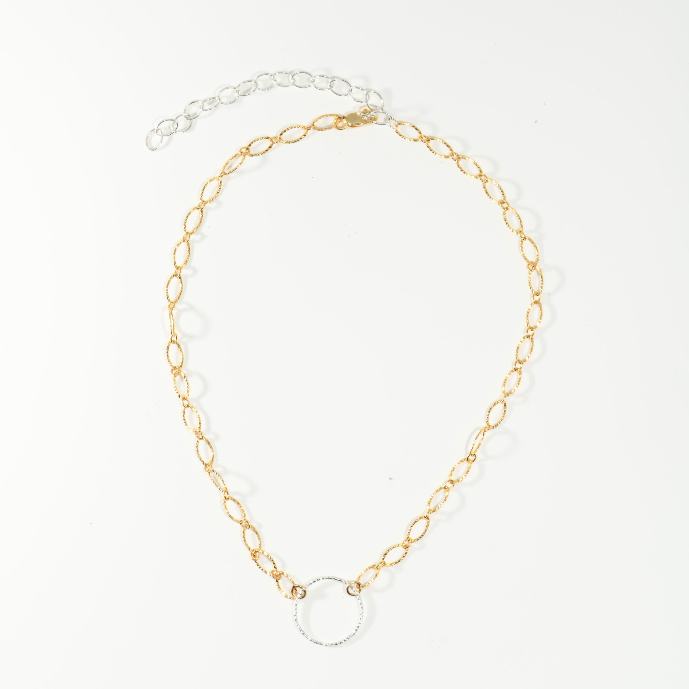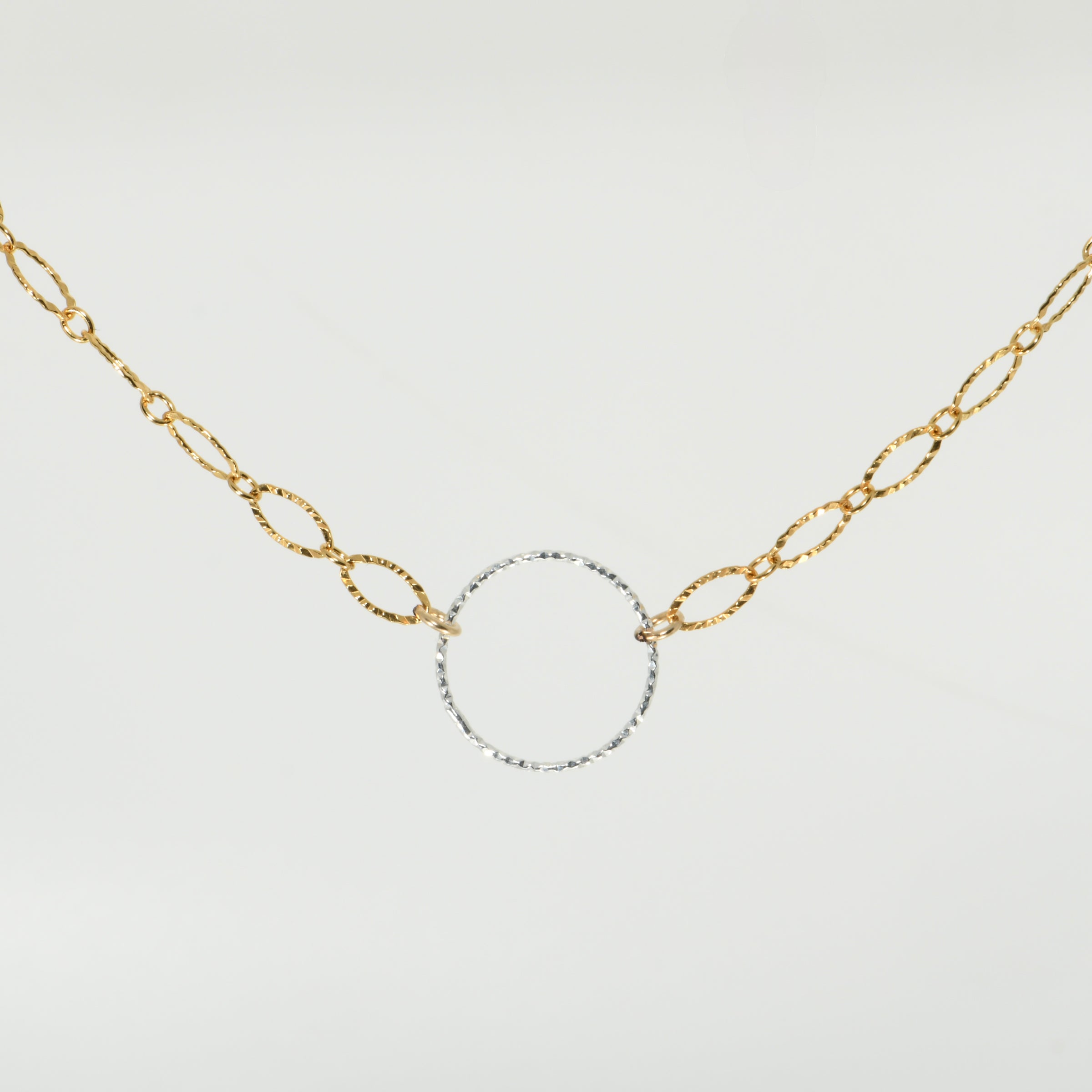 Sterling Silver Diamond Cut Circle Choker Necklace on Gold Fill Chain