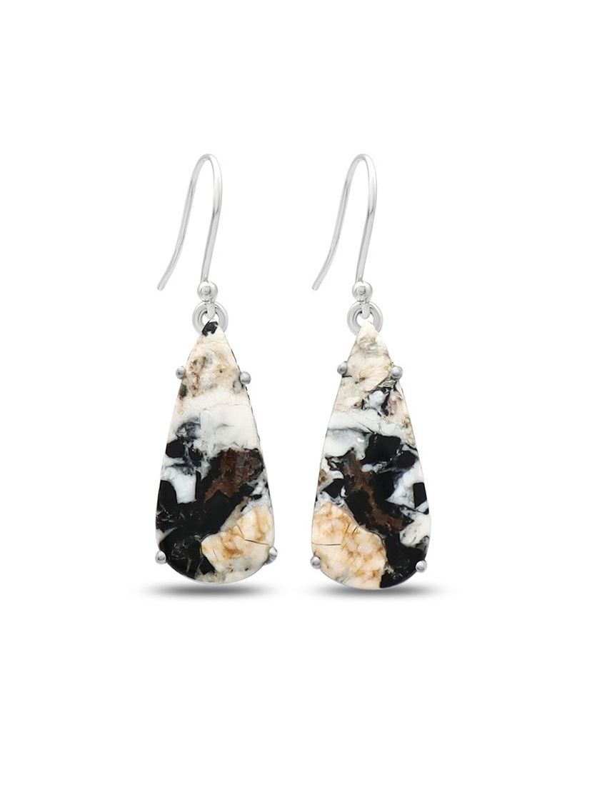 White Buffalo Teardrop Shaped Sterling Silver Earrings