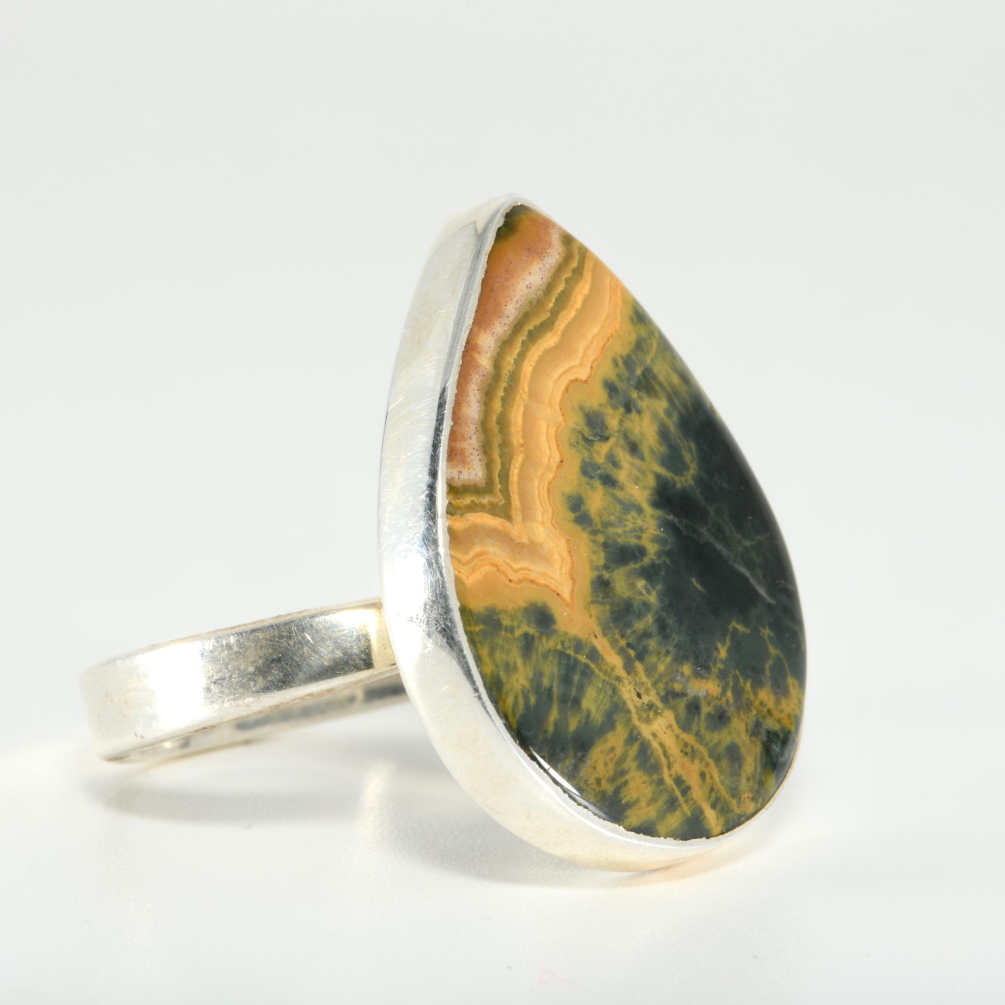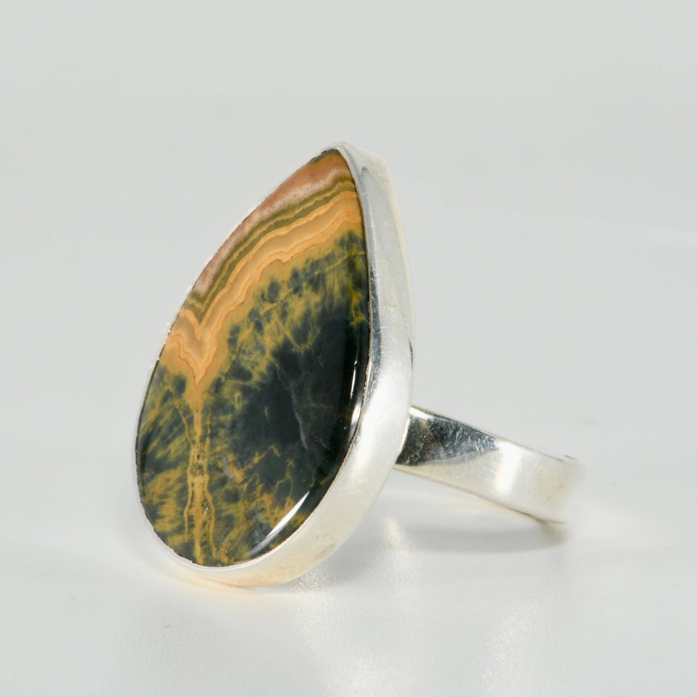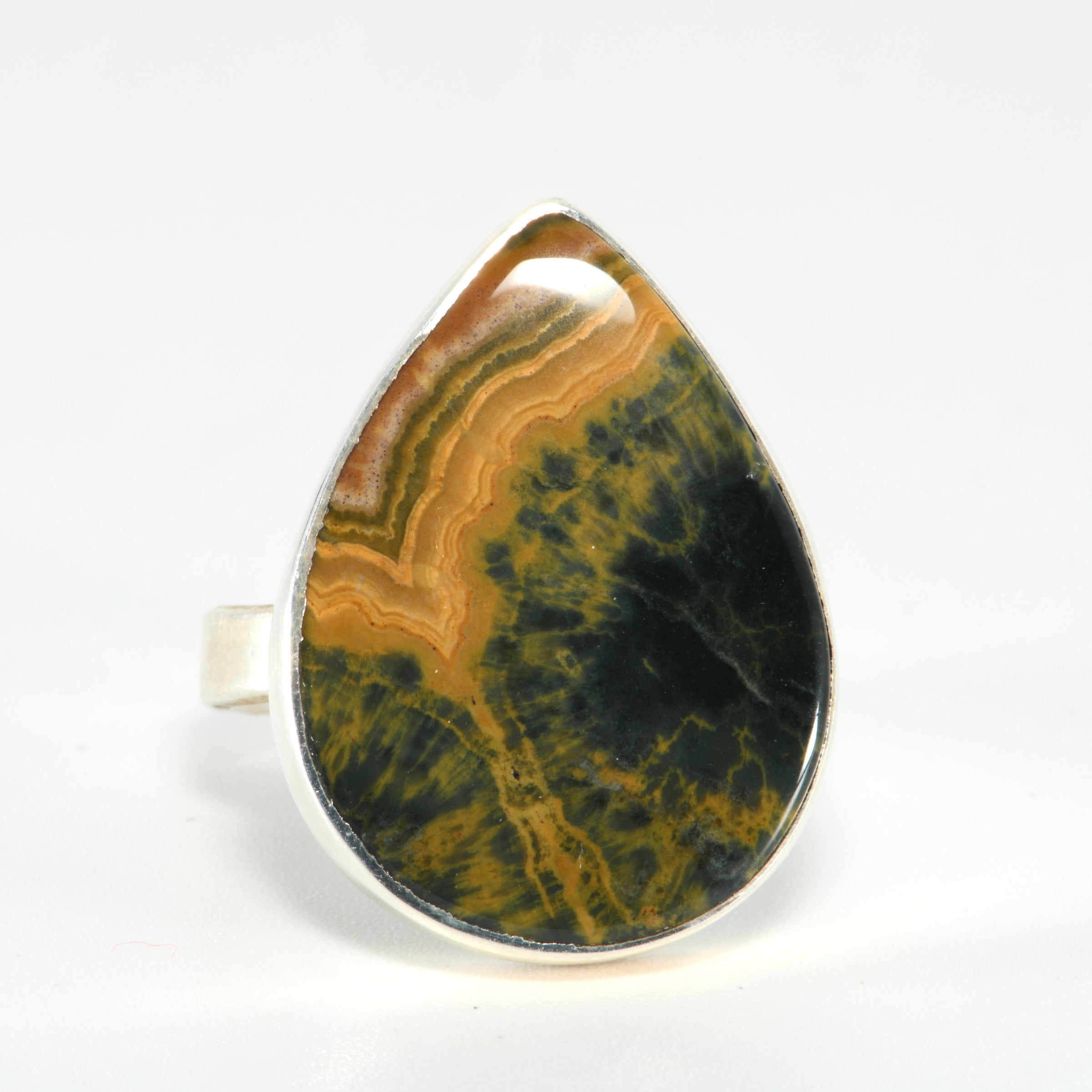 Ocean Jasper Sterling Silver Adjustable Teardrop Ring | 25mm Natural Stone Ring