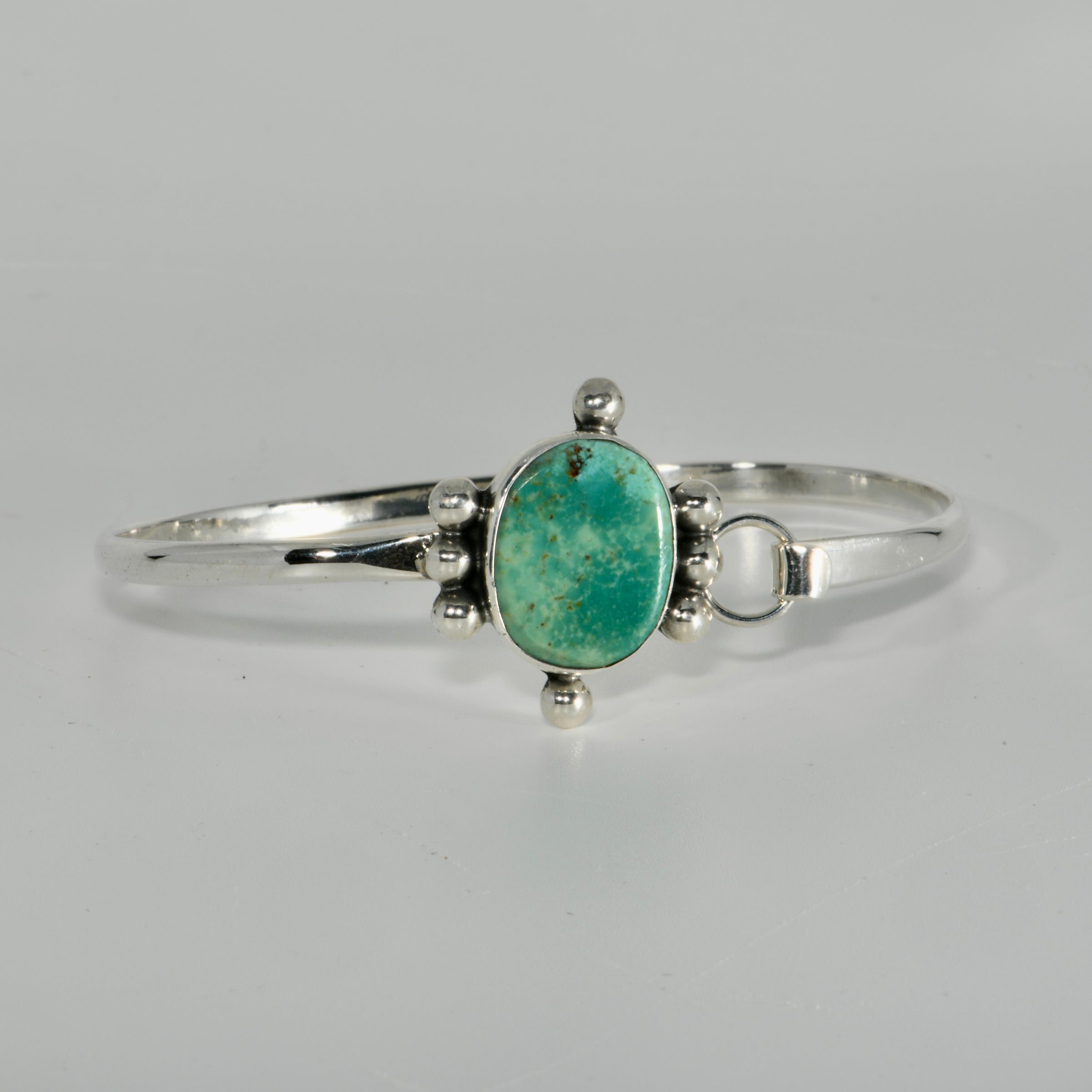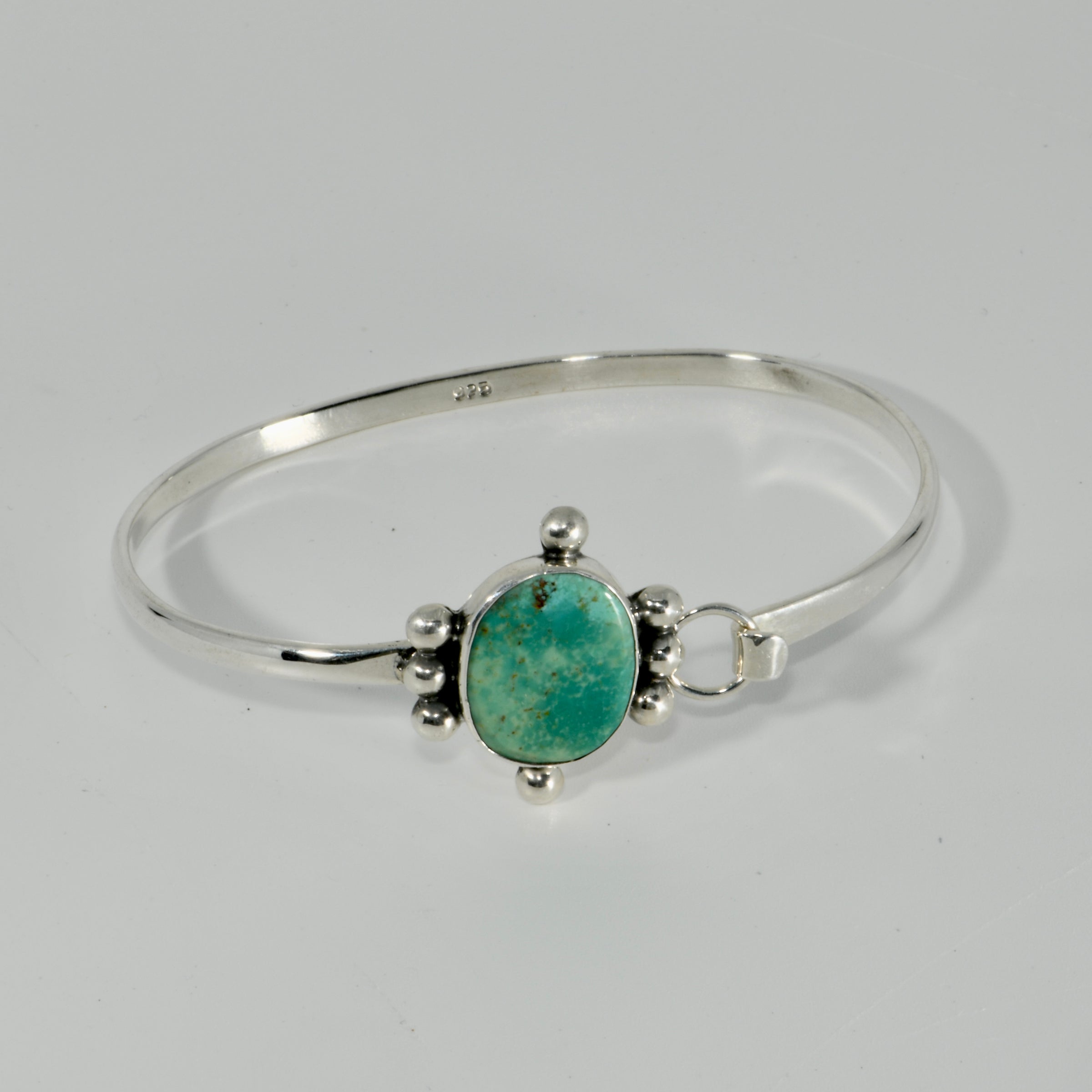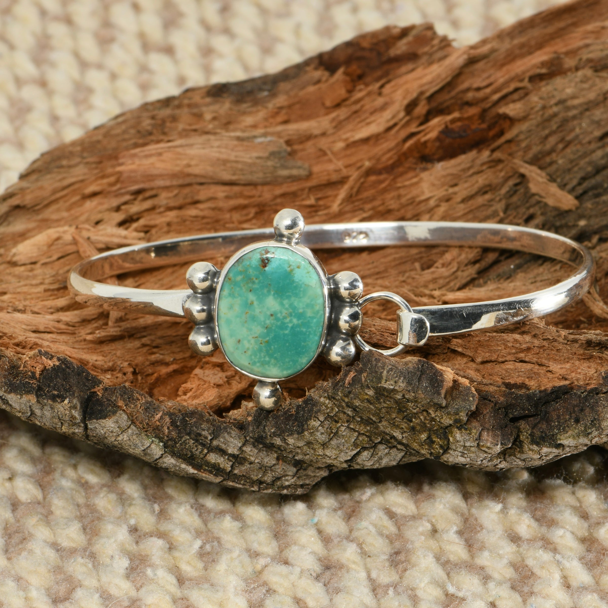 Sterling Silver Turquoise Bangle with Hook Clasp – Handmade Natural Turquoise Bracelet