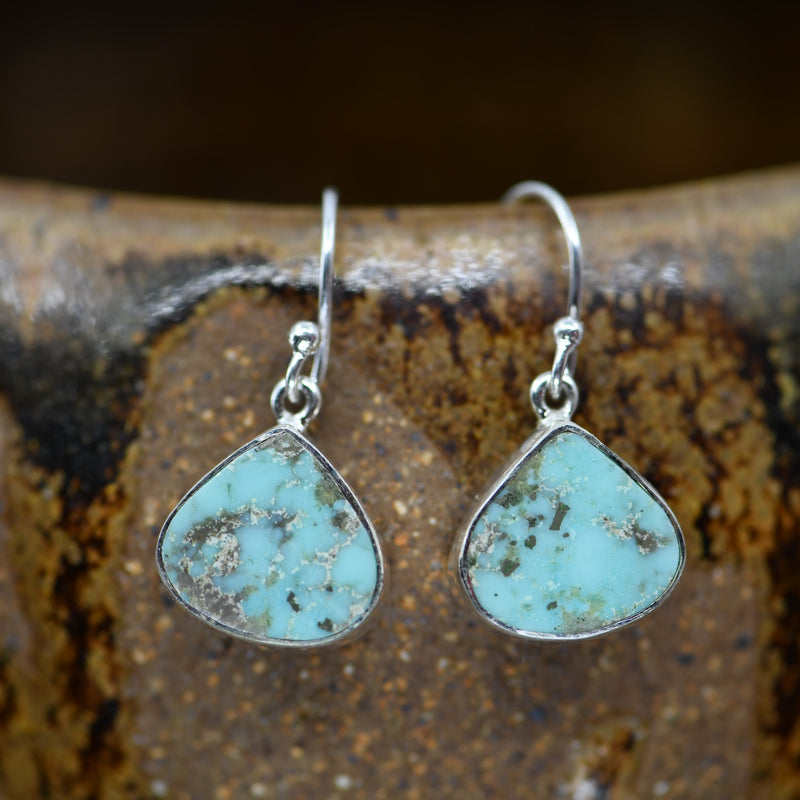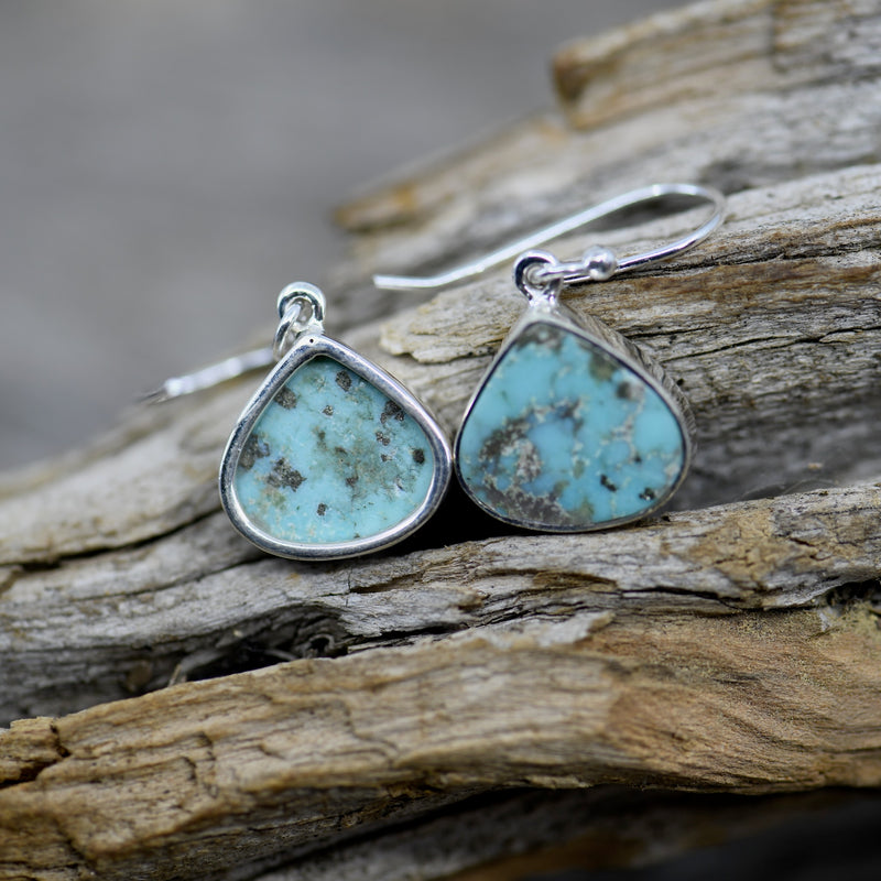 Pear-Shaped Turquoise Sterling Silver Drop Earrings - One of a Kind Artisan Jewelry